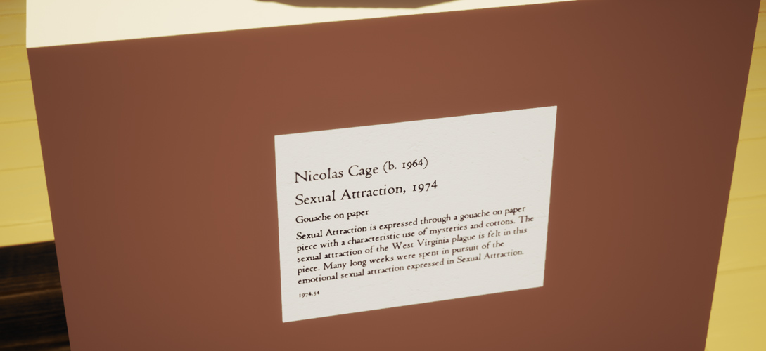 | Tags | 3D, art-gallery, Atmospheric, nicolas-cage, Relaxing |